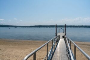 Outside, enjoy a large stone patio with pergolas, a heated 25×50 gunite pool, helipad, a floating dock, and over 2,000 feet of waterfront. Complete with modern mechanicals, this beach house is a rare find.